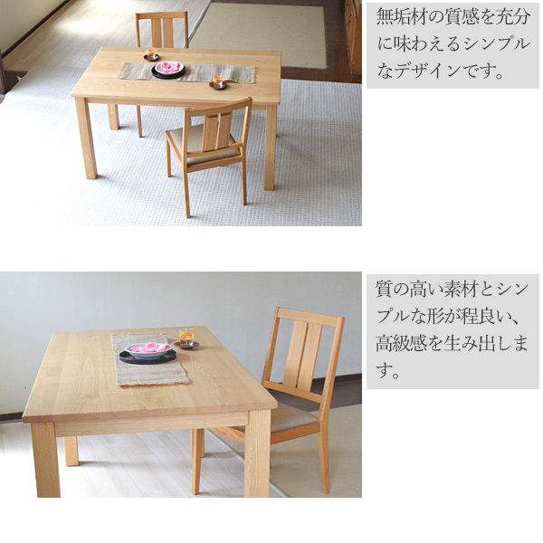 | 【天然木】【自社生産】【送料無料】 木目のはっきりとしたクリの無垢材を贅沢に使った、シンプルなデザインのダイニングテーブルです。 |