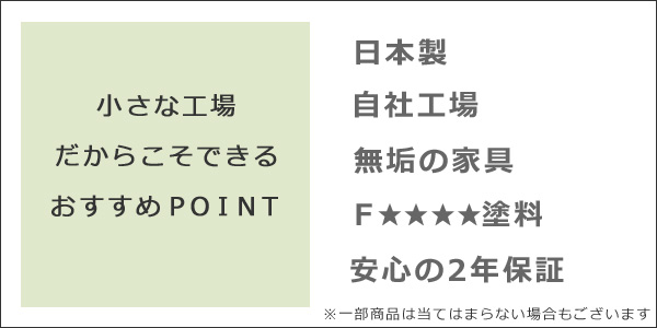 | 仕上げ | 天板:グラノール塗装 天板以外:天然オイル塗装 または、全て天然オイル塗装 |