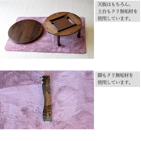 トップページ>リビングテーブル/ちゃぶ台>【円形こたつ】クリ無垢・猫脚・ヒーター付き・脚脱着可能・継ぎ脚付き・4サイズ・4カラー