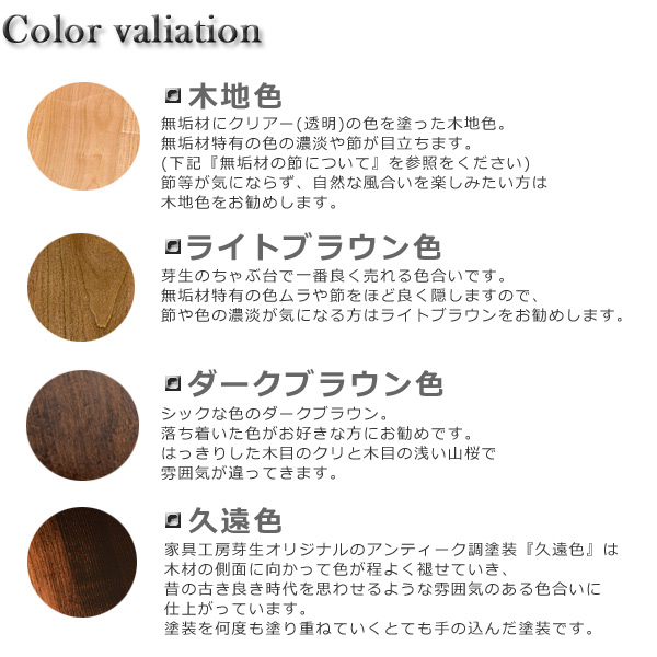 | カラー | ライトブラウン・ダークブラウン 木地色・久遠色 |